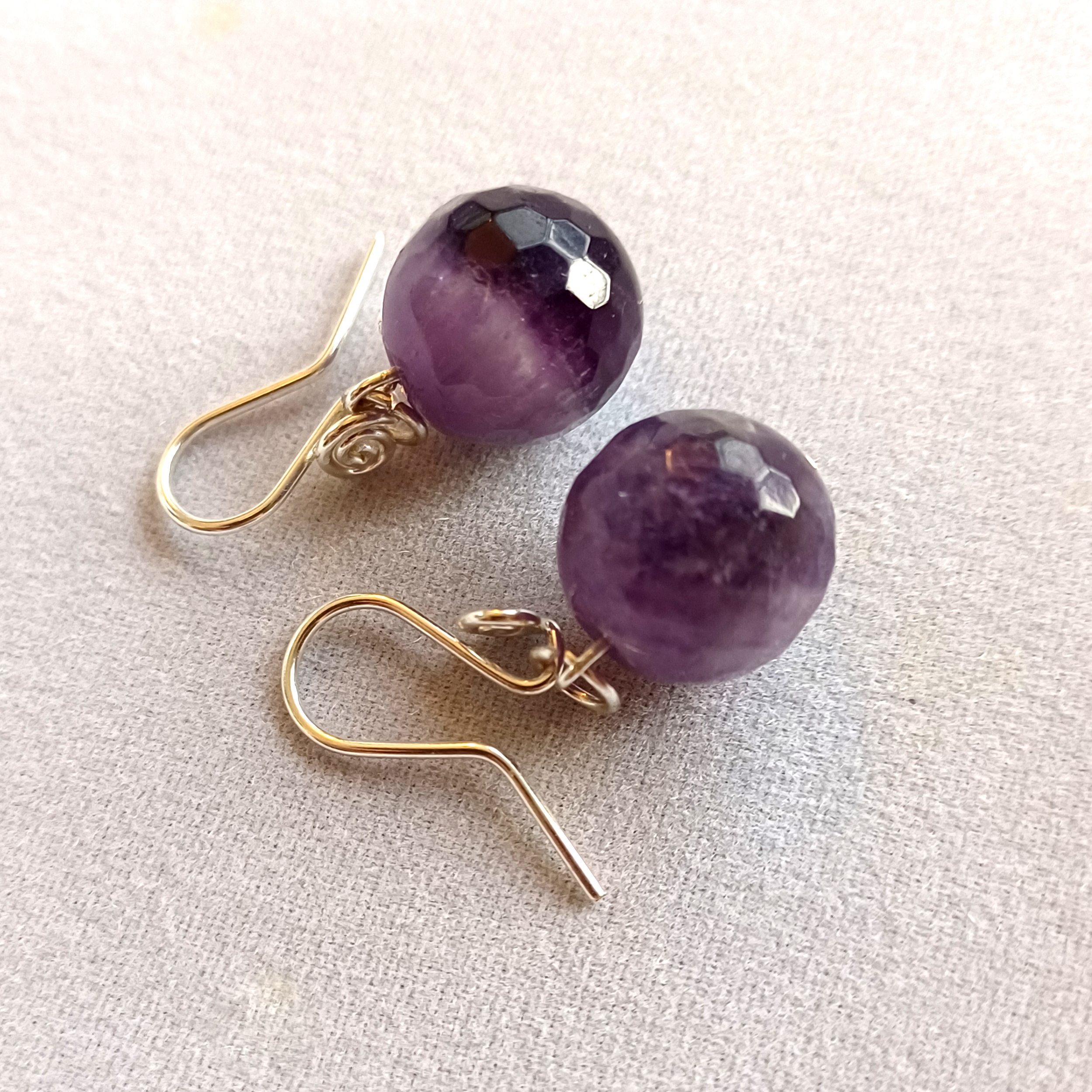 Brincos em Prata 950 com Ametistas Chevron (Só trabalhamos com pedras naturais não tonalizadas). Altura total da peça: 30 mm. Tamanho das pedras: 12 mm de diâmetro.